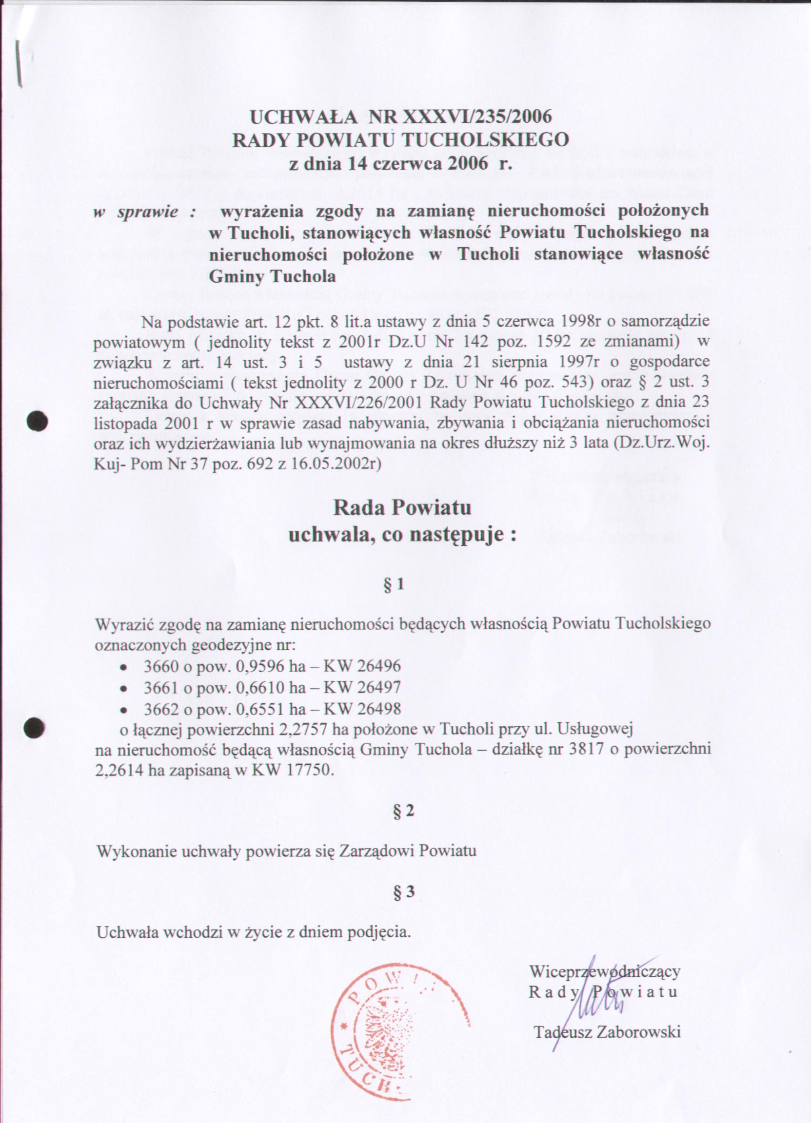 w sprawie wyrażenia zgody na zamianę nieruchomości położonych w Tucholi, stanowiących własność Powiatu Tucholskiego na nieruchomości położone w Tucholi, stanowiące własność Gminy Tuchola