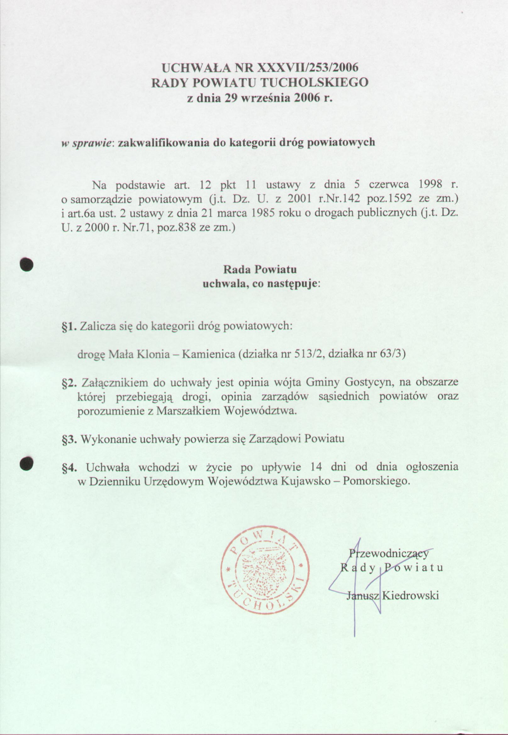 | osoba odpowiedzialna: | Rady Powiatu Tucholskiego | ||