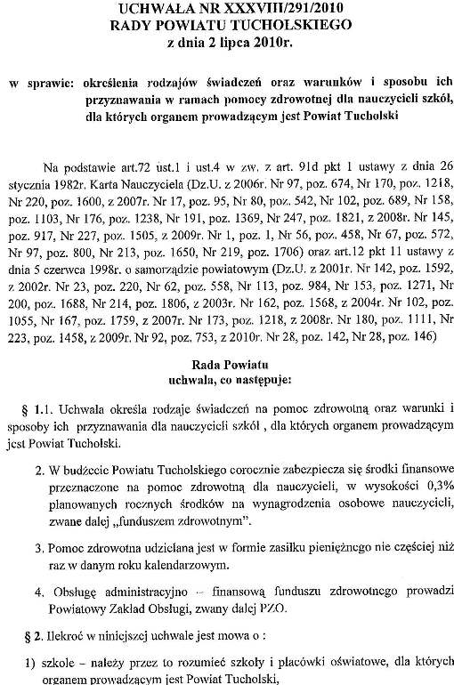 | utworzono: | data: 10:55, 31.05.2011 | przez: Elżbieta Damasiewicz | Uchwała nr XXXVIII/291/2010 Rady Powiatu Tucholskiego z dnia 2 lipca 2010 w sprawie określenia rodzajów świadczeń oraz warunków i sposobu ich przyznawania w ramach pomocy zdrowotnej dla nauczycieli szkół, dla których organem prowadzącym jest Po |