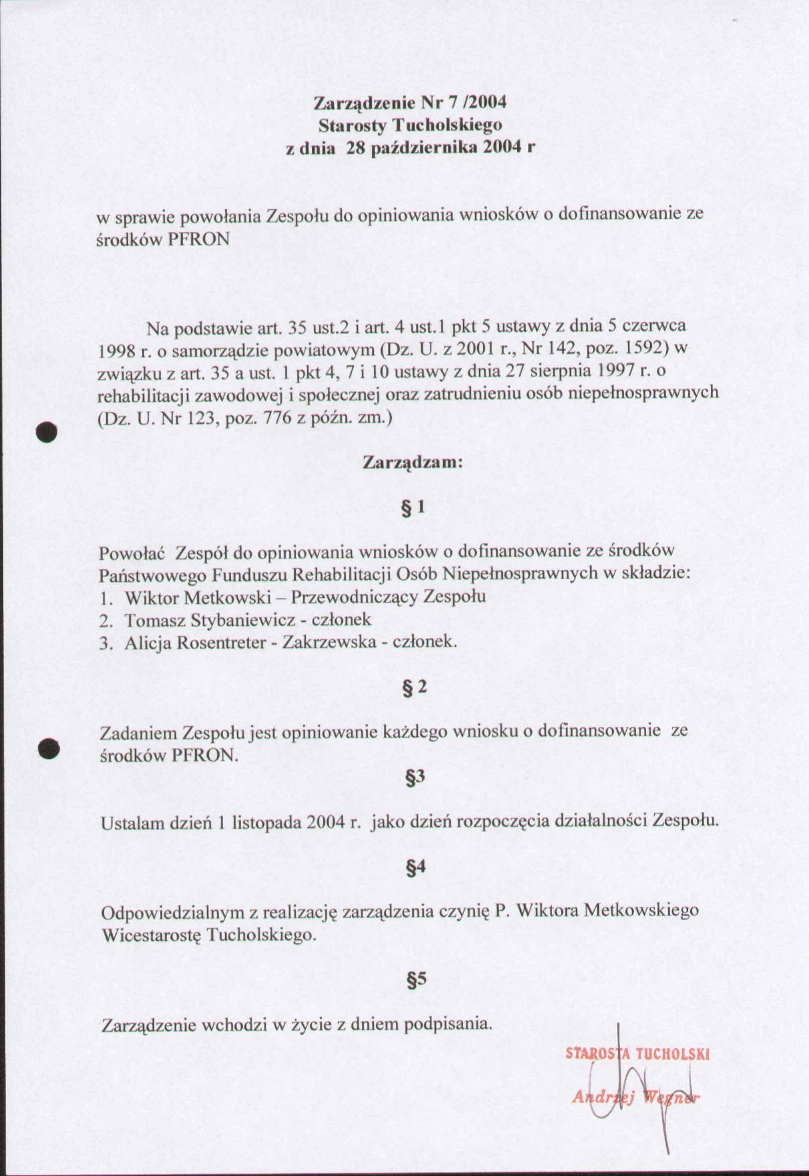| osoba odpowiedzialna: | Andrzej Wegner - Starosta Tucholski | ||